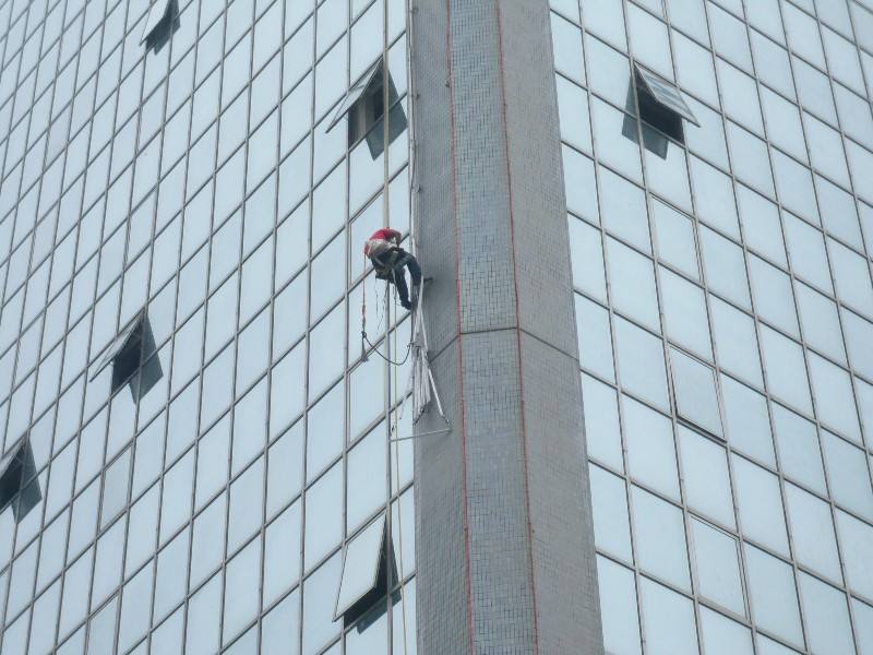 吊板方式是用吊繩、吊板將人吊到工作位置進(jìn)行清洗。這種聲式比較簡單,成本也低,只要工人身體素質(zhì)好、繩子連接牢固就可以進(jìn)行,一般的大樓都可以用這種方式進(jìn)行清洗,但是這種方式的操作必須使安全措施到位,否則危險性很大,造成傷亡事故的都是因安全措施不到位造成的。擦窗使用使用升降設(shè)備。